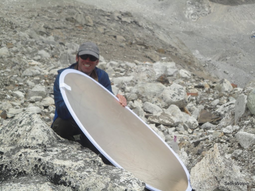Linked up with friends from Peak Promotions (Christine, Robin, Jenny, and Oskar) in search of the Pumo Ri base camp. Oscar is a photographer (http://www.kihlborg.se) and was also on the first successful Swedish expedition to summit Everest in 1991. He arrived at base camp ~one week ago to lend support to Robin who will be the youngest Swede to summit if all works out well. Oskar also brought some clothing from the Swedish clothing line ‘Everest’, with plans for a photo shoot using Robin and Jenny as models. I was only vaguely aware of this as we rock hopped on what we thought was the side trail to Pumo Ri base camp. We never found the camp, but did find a nice hill with just a bit of Everest peaking out. I ended up getting drafted to hold the sun reflector thingy. Lots of fun. After the shoot we rolled down to Gorak Shep for noodles. Except for Robin who is worried about getting sick from ‘outside food’ – I think he snuck in a packet of dehydrated food. It’s his first trip outside base camp and with the summit push maybe only a week away…it’s understandable he is worried about getting sick. Jenny, Robin, and Oskar have taken off for Pheriche – with Jenny and Oskar continuing to Namche to meet her brother. Robin will be back tomorrow.