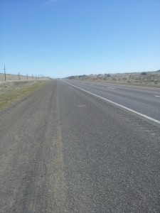 No great adventures these past few days. My body is holding up ok. I have a lot of scratches on my legs, some itchy bites, some sun burn, and I lanced three blisters two days ago. Otherwise, just peachy. I managed to find some side roads to run on but those have petered out and the last two days have been straight forward running on the interstate. The shoulder is huge and the traffic is now pretty light. No more police pull overs. It’s been amazing to watch the landscape slowly change, now low hills surround me and I find bits of tumble weed caught up in fences. There are windmills everywhere. The mornings are still cold  – in the 40’s – but by mid-day it is pushing 70 and I’m usually fatiguing.
