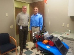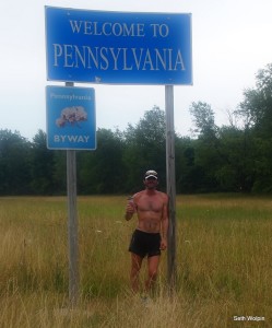 Thursday the 5th found me trucking north east on Route 5 along Lake Erie. Vinyards, farms, ice cream stands, and bait and tackle shops lined the road. I took a short break after about ~12 miles and adjusted a few things. A few hundred yards later my right knee started hurting and within ~50 more feet I could barely put any weight on it. I had a little ice and I took a 10 minute break and used a zip lock bag. A couple miles later it happened again and I did the whole RICE thing (Rest, Ice, Compression, Elevation) before some thunder got me back on my feet. I was only 4 miles or so from Erie which is a sizable town.With my phone I found ‘Orthopaedic and Sports Medicine of Erie‘ only two blocks off my route. I promised myself that if it happened again I would call them and see if they could squeeze me into the schedule. This wasn’t an easy decision to make because I was trying to beat the heat of the day and did I really want to know if my knee was messed up? And then there were the potential costs. But of course it happened again and I had made a promise to myself. The four miles to the clinic after making the phone call were actually pretty easy but I noticed the knee stiffening up anytime I stopped. Sitting in the exam room an ~hour after my call (Thanks Carrie!), a nice physician assistant named Joe checked me out and was able to palpate the exact spot where it hurt; the tentative diagnosis was tendonitis where my right hamstring connects to my knee. Dr. James Delullo, an ortho surgeon checked me out too and concurred. Both seemed pretty pumped about the run. The treatment did not involve bone saws and a long email saying the run was off, rather anti-inflammatories and ice. Xrays, MRIs and steroid injections were talked about but shelved. My biggest fear that they would tell me not to keep running went unrealized. I left with a ton of samples and made my way through some pretty run down parts of Erie. Five miles later I received a call from the clinic saying that $95 had been refunded on my credit card leaving only $55 as the total charge. No further explanation was provided but my sense is these guys waived their professional fees and I was left with just the facilities fees. Thanks! And of course my knee felt great for the rest of the day and I was able to put in 38 miles, finishing just south of the New York border. The knee hasn’t really bothered me in the 90+ miles since. I’m guessing that it was upset with me for jumping sideways down a bunch of huge stone seawall blocks the day before, when I was eager to put my feet in the water at my cousin Jeans. I guess I should have taken the normal stairs.