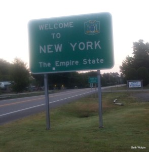 The next morning, Friday the 6th, I was running by 5am, well equipped with a bunch of home made muffins and I passed the border within a couple miles. New York is my home state so it felt pretty good to step onto the other side of the sign.