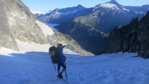 Every step got more and more icy in the early morning shade. Not a great time of day to descend. I regretted bringing micro-spikes instead of crampons.