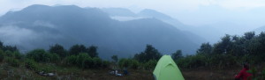 After far too many hours bushwacking up a steep leach infested ridge – we finally found camp