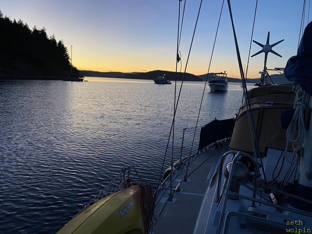 I love the fact that I can take my home on adventures. Sailing through the San Juan Islands and dropping anchor at a beautiful destination for the night is something I feel fortunate to be able to do. After buttoning everything up on the boat, I usually lower a small river kayak down to the water from the fore-deck and then paddle to shore to walk trails, sit on a beach, or hit a local store if available. The kayak is really meant to be on rivers, it doesn’t track that well on flat water, nor does it cut through waves well – but it gets me to shore and back in a passable manner. Back on my boat, I’ll cook dinner and then read and relax before calling it a night – the water lapping at the sides of my boat and (hopefully) some gentle rocking lulling me to sleep like a baby in a cradle.