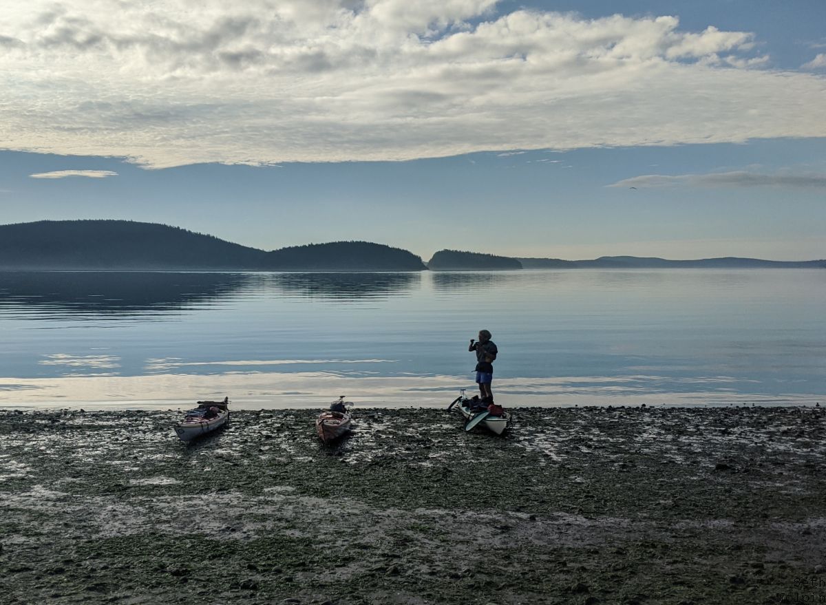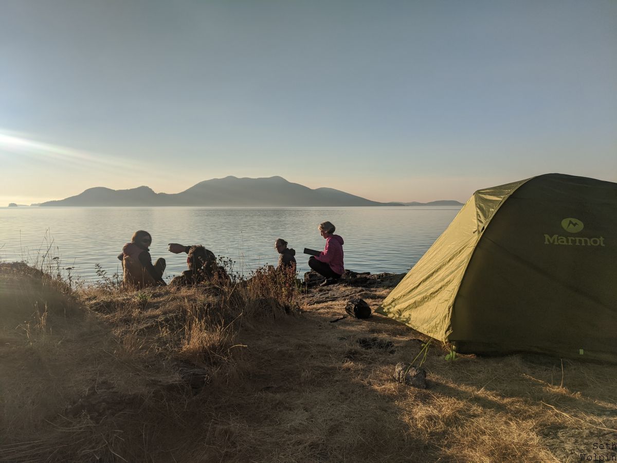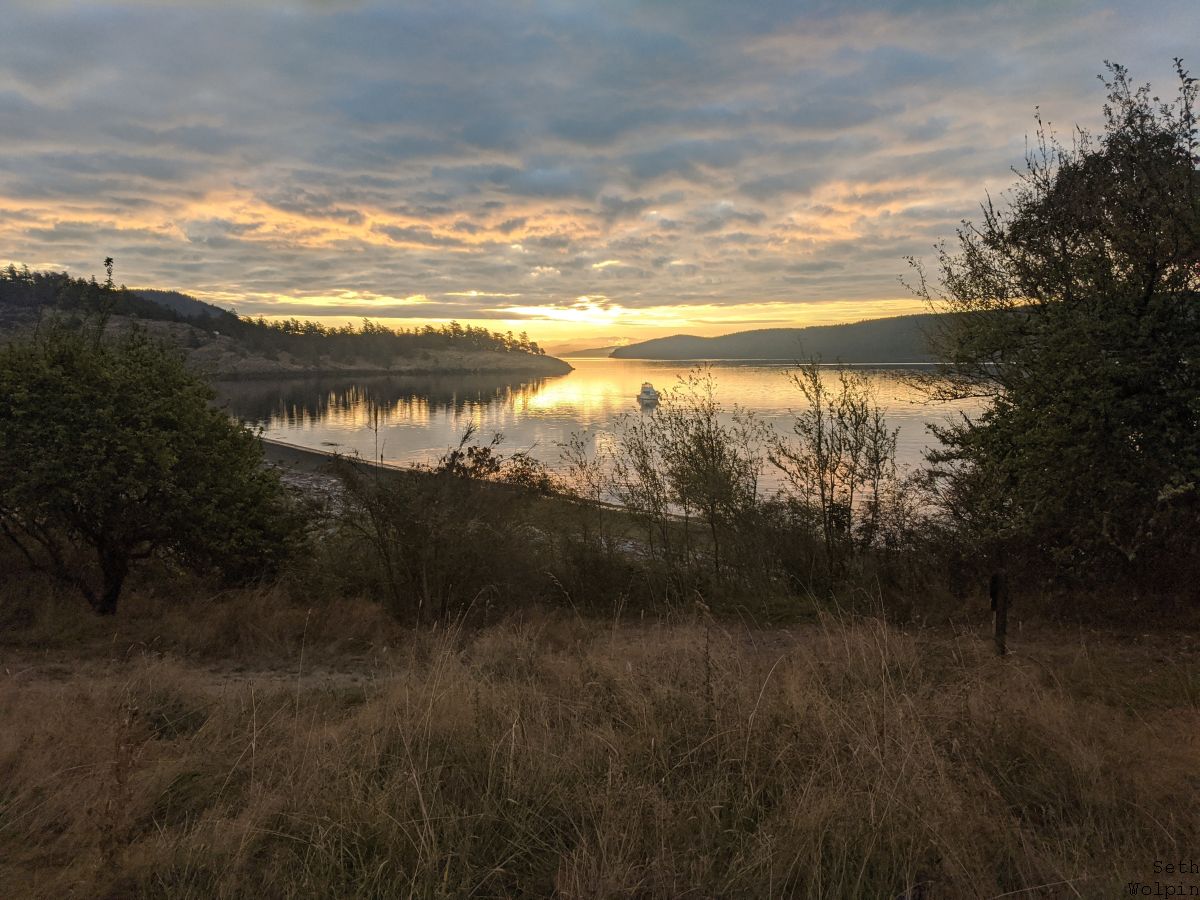 On the third day, we woke to the sun coming up over Lummi Island and the ragged bumps of Cyprus’s ridge line. Kimberly, Benj and I were going to paddle back to Anacortes, crossing Rosario Strait finally and hugging the west side of Cyprus Island as we headed south. The others had more time and were going to continue north to Clark Island for more adventure.