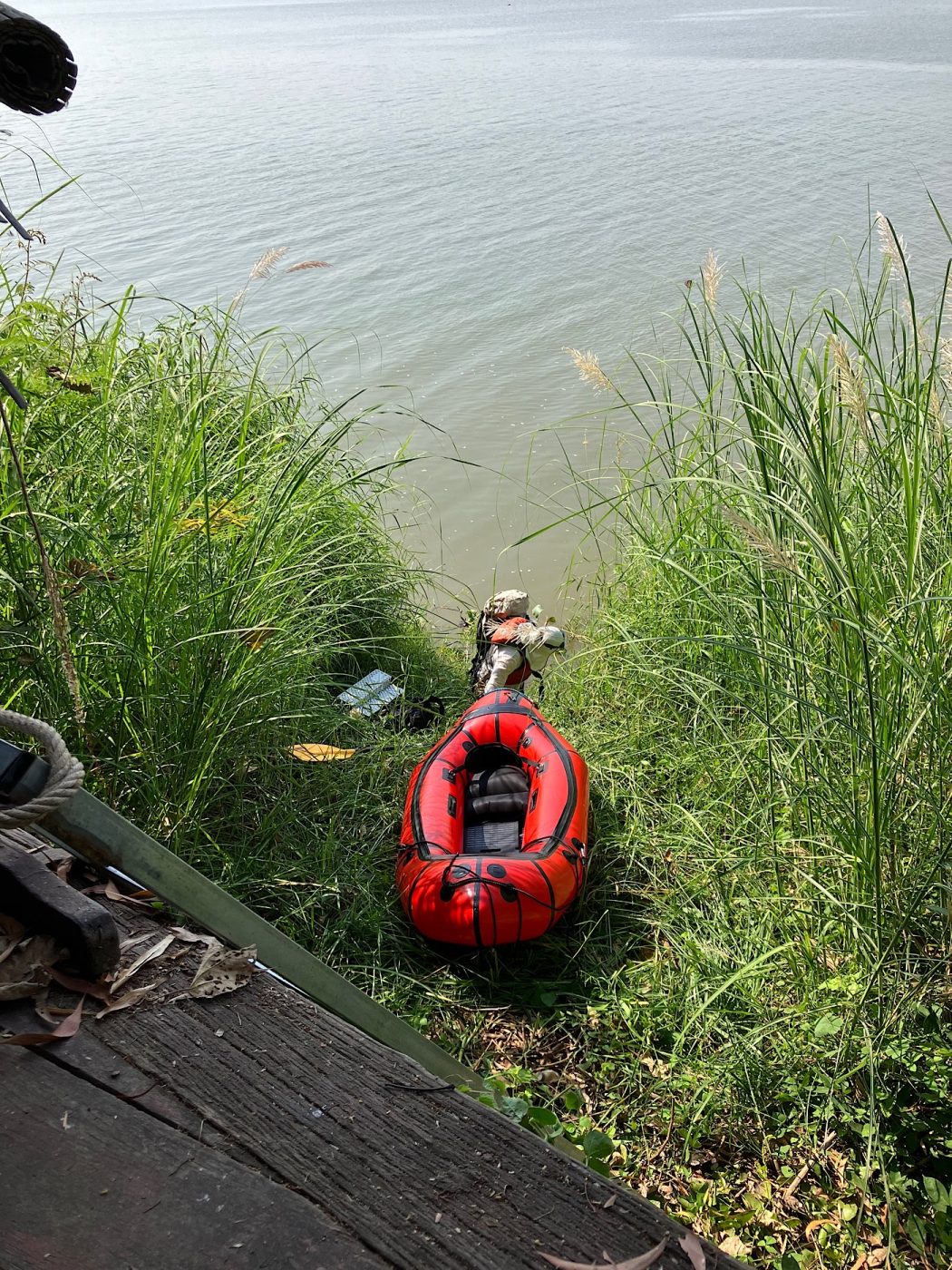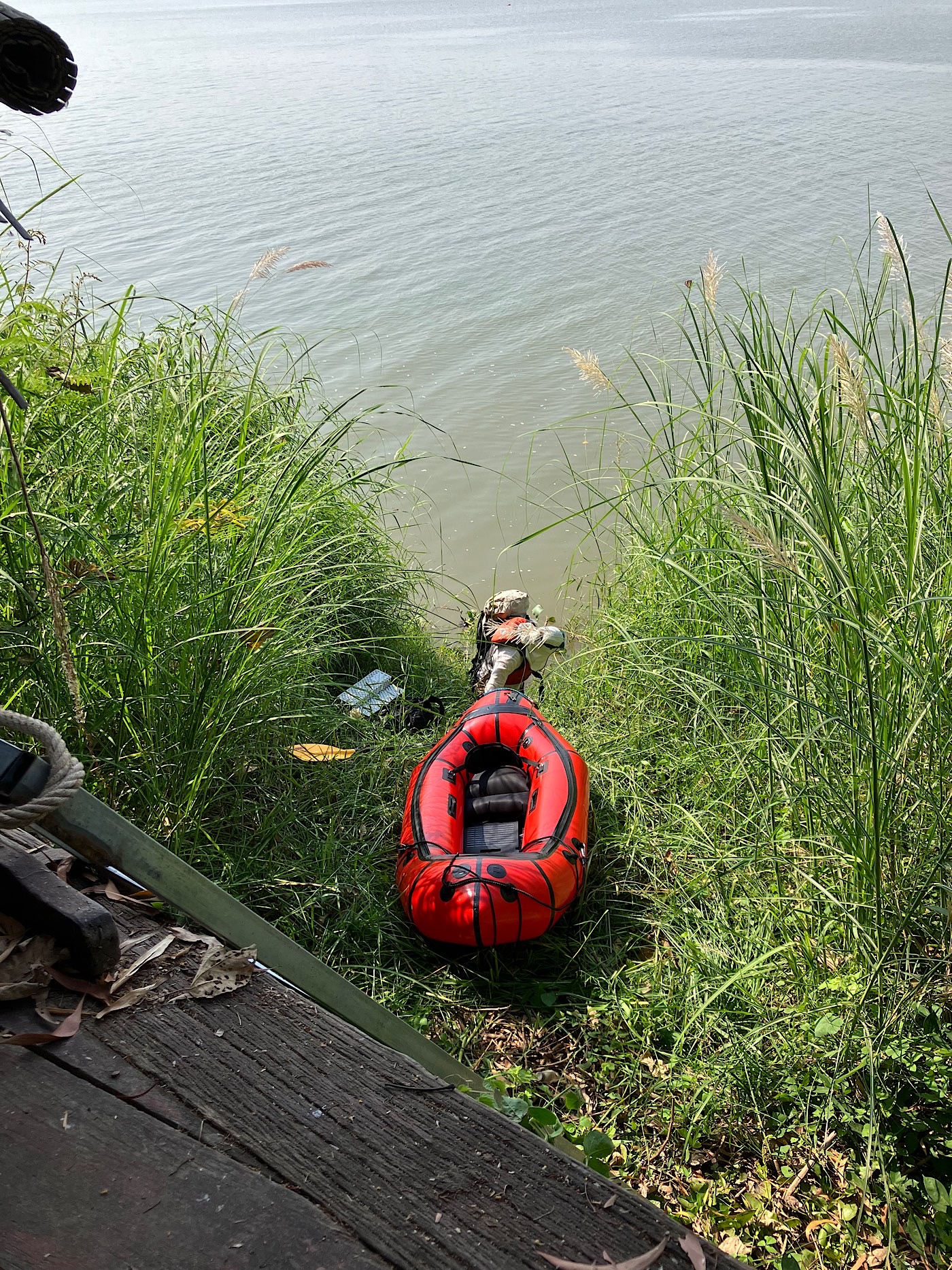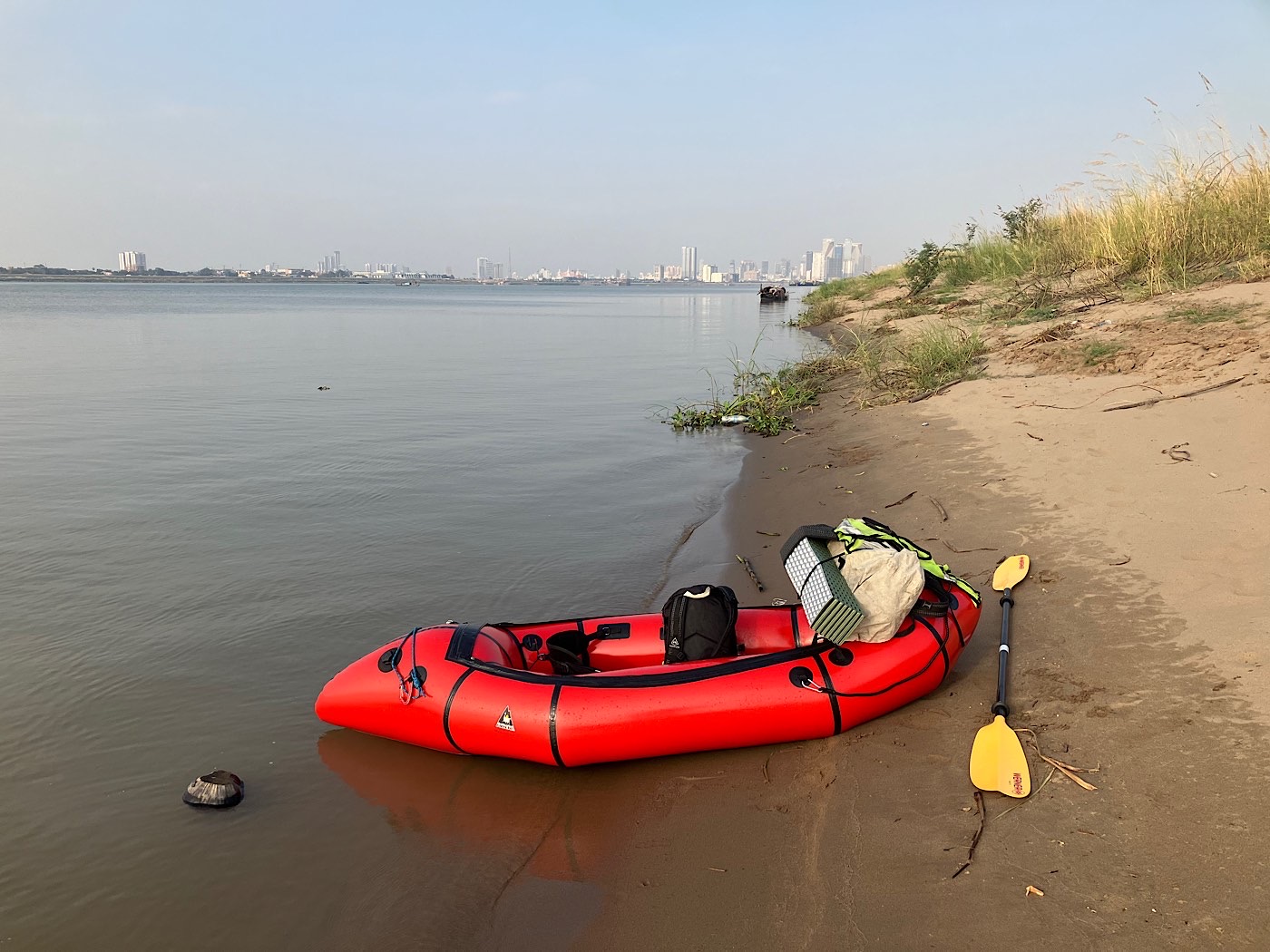 My friends Frances and Soeun were at their weekend house which is about 6m/10km downriver from the city center.   I stayed with them last April and had a little opportunity to paddle around with their kayaks – planting the seeds for this return visit.   Frances told me she was thinking about coming back into the city because they were out of coffee.  I proposed a coffee delivery via packraft instead.
