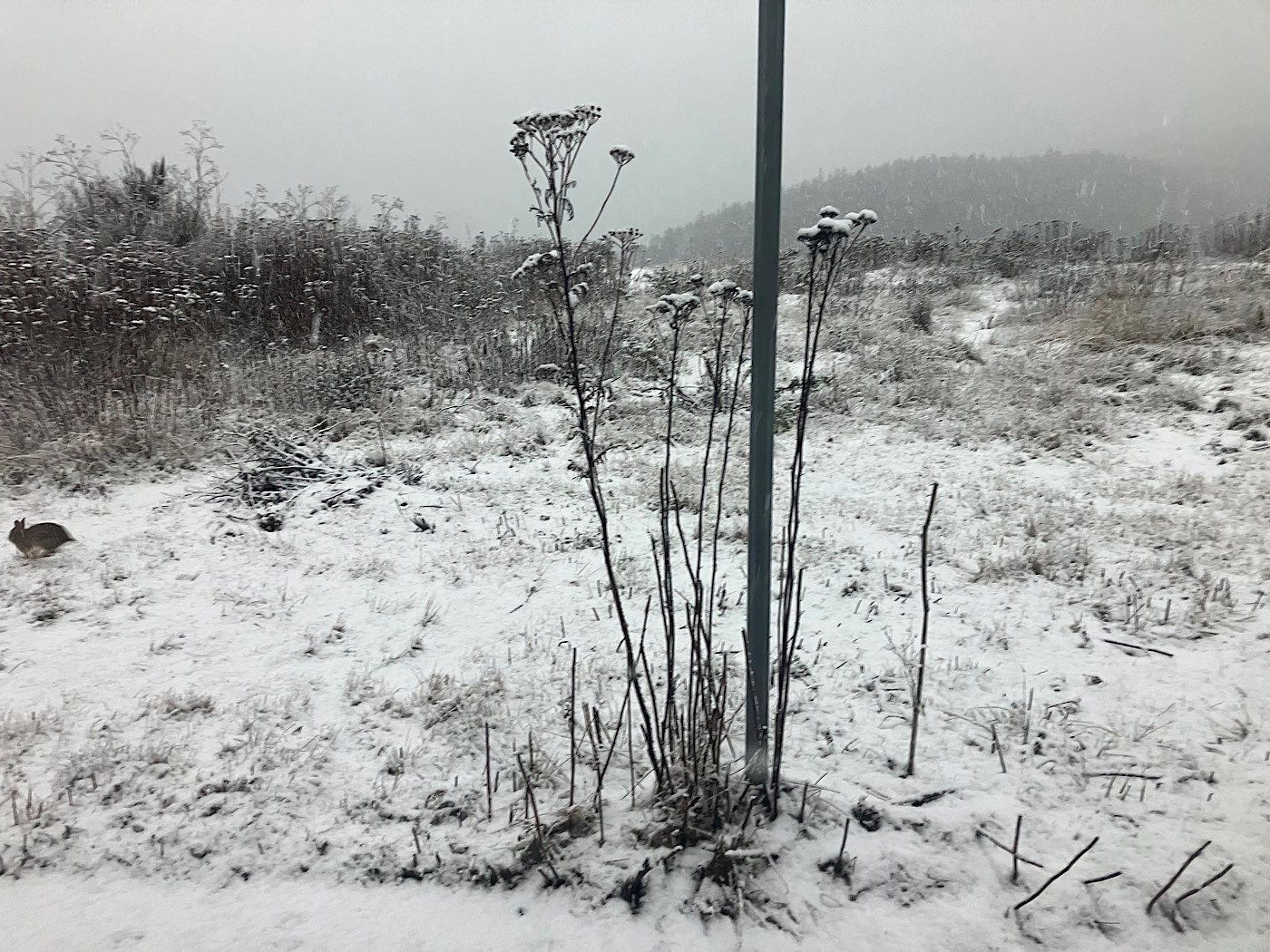 A bunny spotted from my living room/bedroom/kitchen window: Cold camper in Anacortes