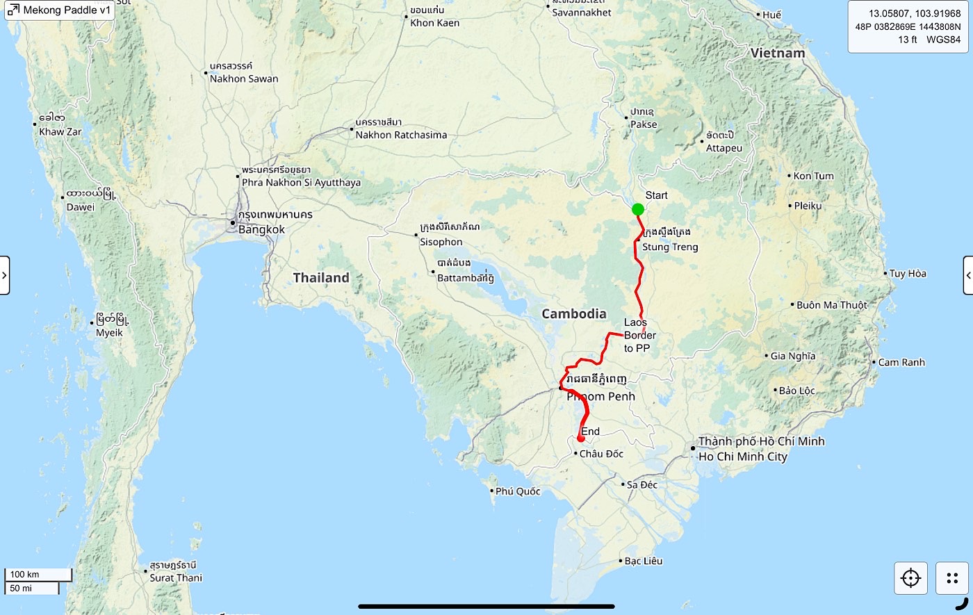 The long term goal for this trip is paddle down the Mekong, ideally from the Laos border to the Vietnam border with Sudeep. A distance of maybe 300m/500k. But right now Sudeep is doing his own form of freezing in Madison, Wisconsin and doesn’t arrive for a few weeks.  So my shorter term goal is to test the waters in various places and get my taxes done.